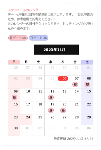 ・バイト・学校・仕事の予定などがあった場合、やり取り以前に問題ない入れておくことで少ない調整でセッティングにつながります。